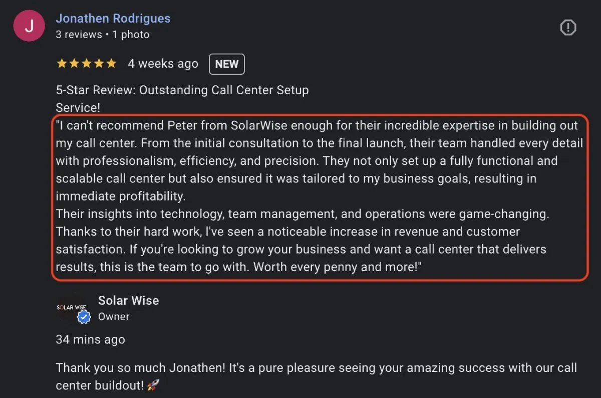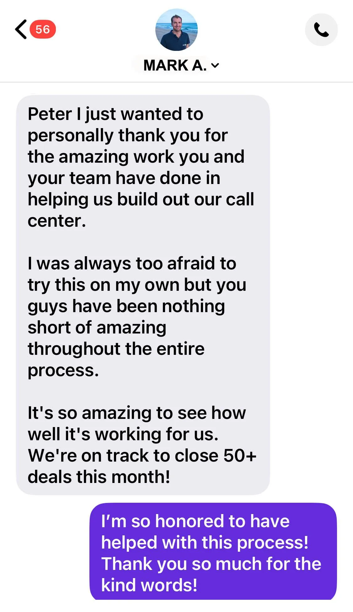 "Incredibly happy with my decision to work with Peter and his team to build out our call center."